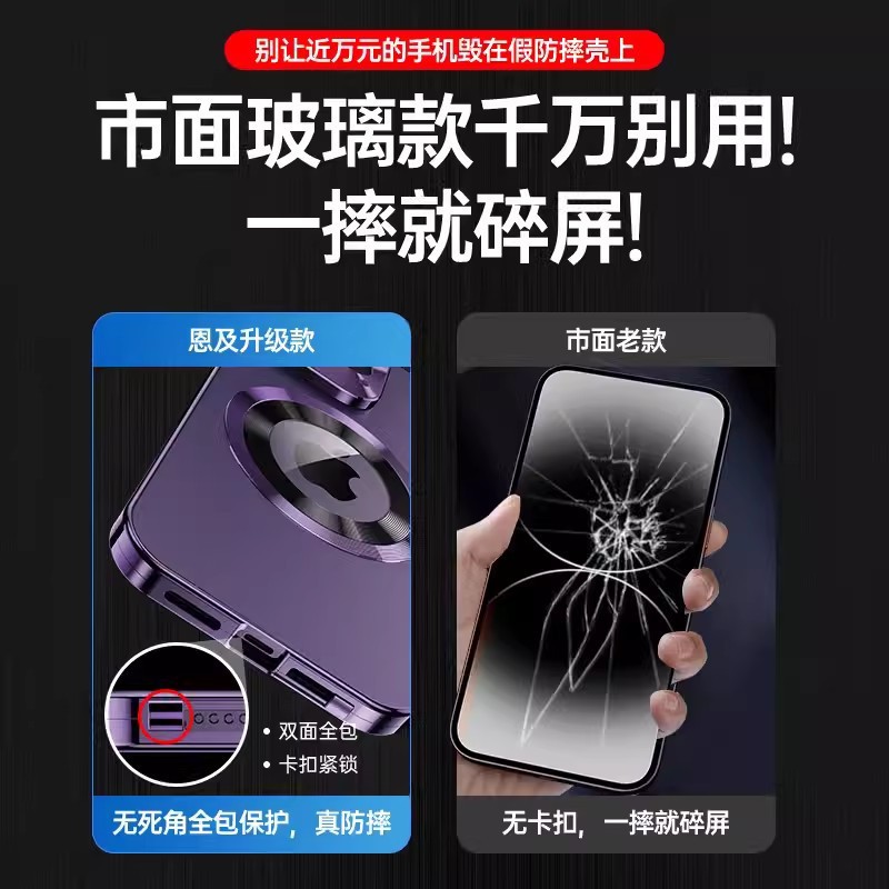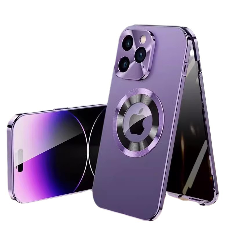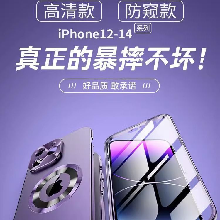 适用iPhone16卡扣漏标磁吸手机壳苹果17金属防窥高清双面玻璃硬套